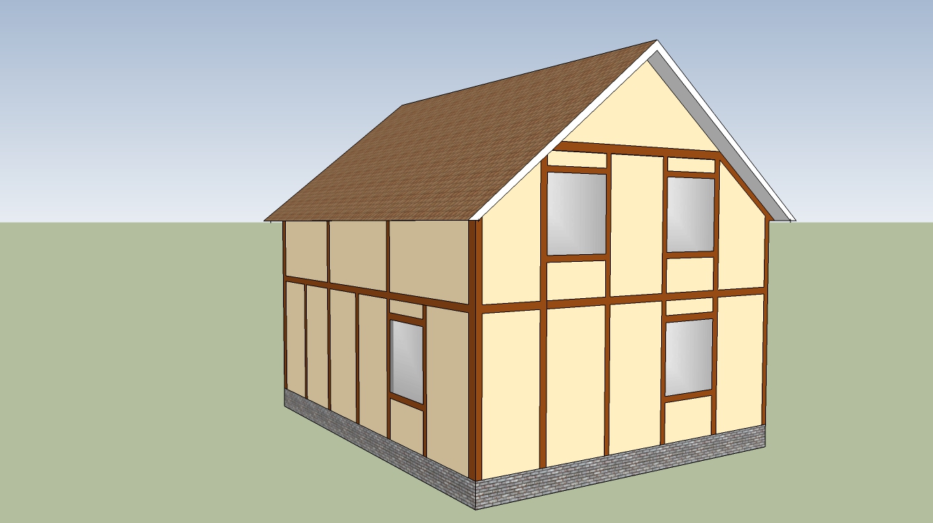 Каркас из бруса 50 х 200 мм, обеспечивает несущую способность панели для возведения зданий до двух этажей в высоту без дополнительного усиления стен. С наружи панели обшиваются асбестоцементным листом (ацеид) толщиной 10 мм, который отличается высокой влагостойкостью, ударопрочностью и пожаростойкостью. И позволяет нанести декоративное покрытие на стены (краска, штукатурка) с минимальными затратами, а также использовать любые облицовочные материалы (кирпич, сайдинг).